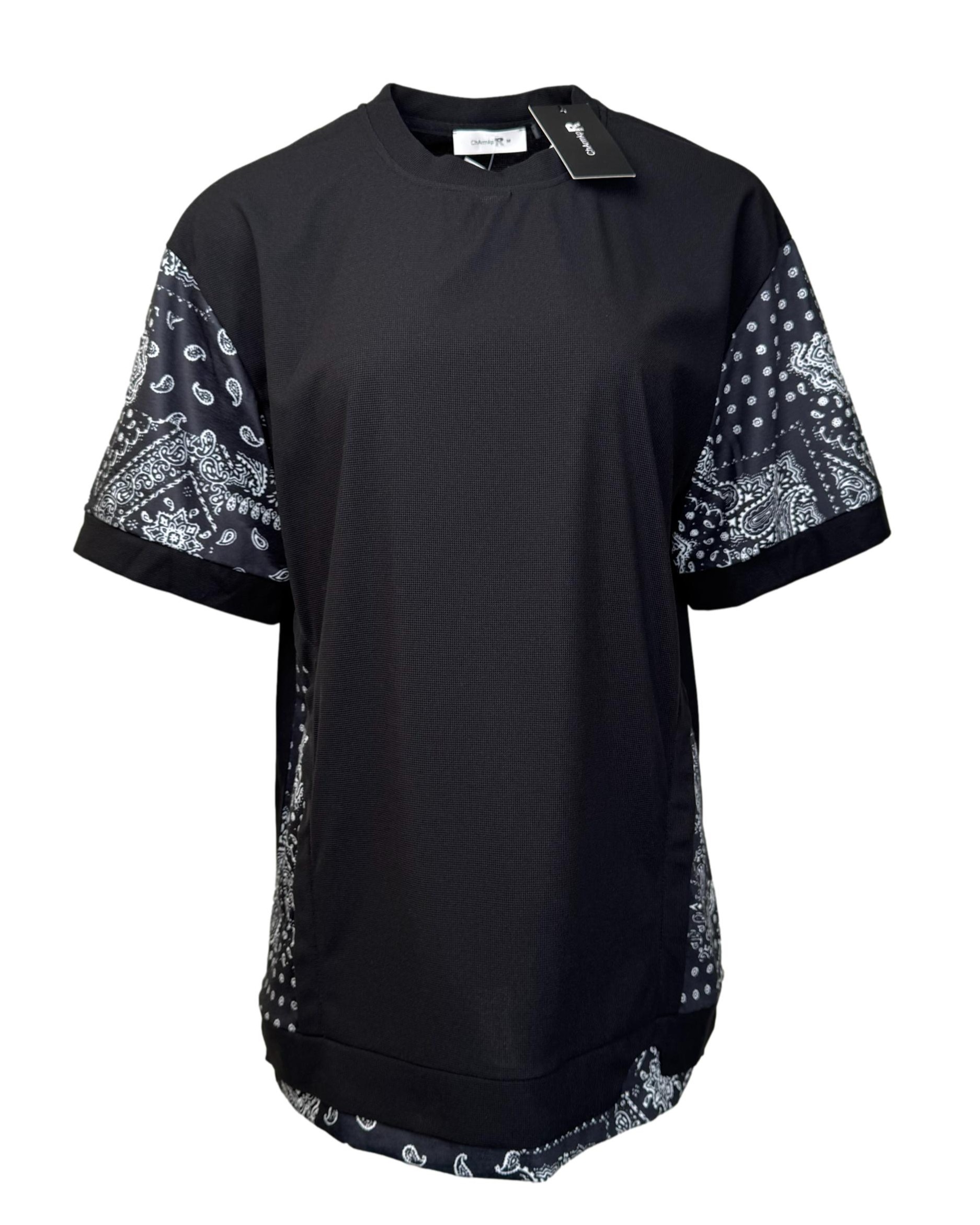 Matmenys: nuo pažasties iki pažasties – 50,5 cm, rankovės ilgis – 22,5 cm, ilgis – 66 cm